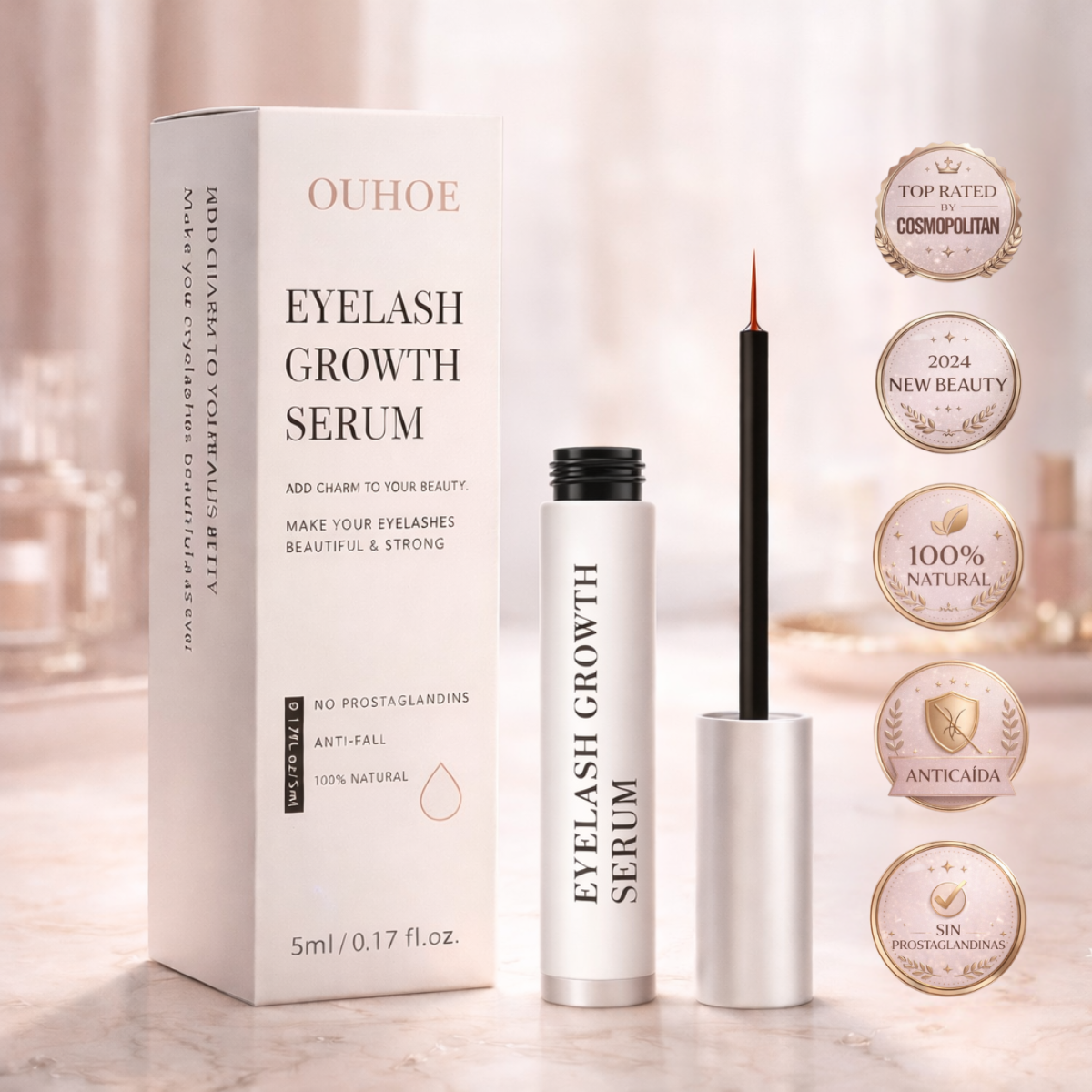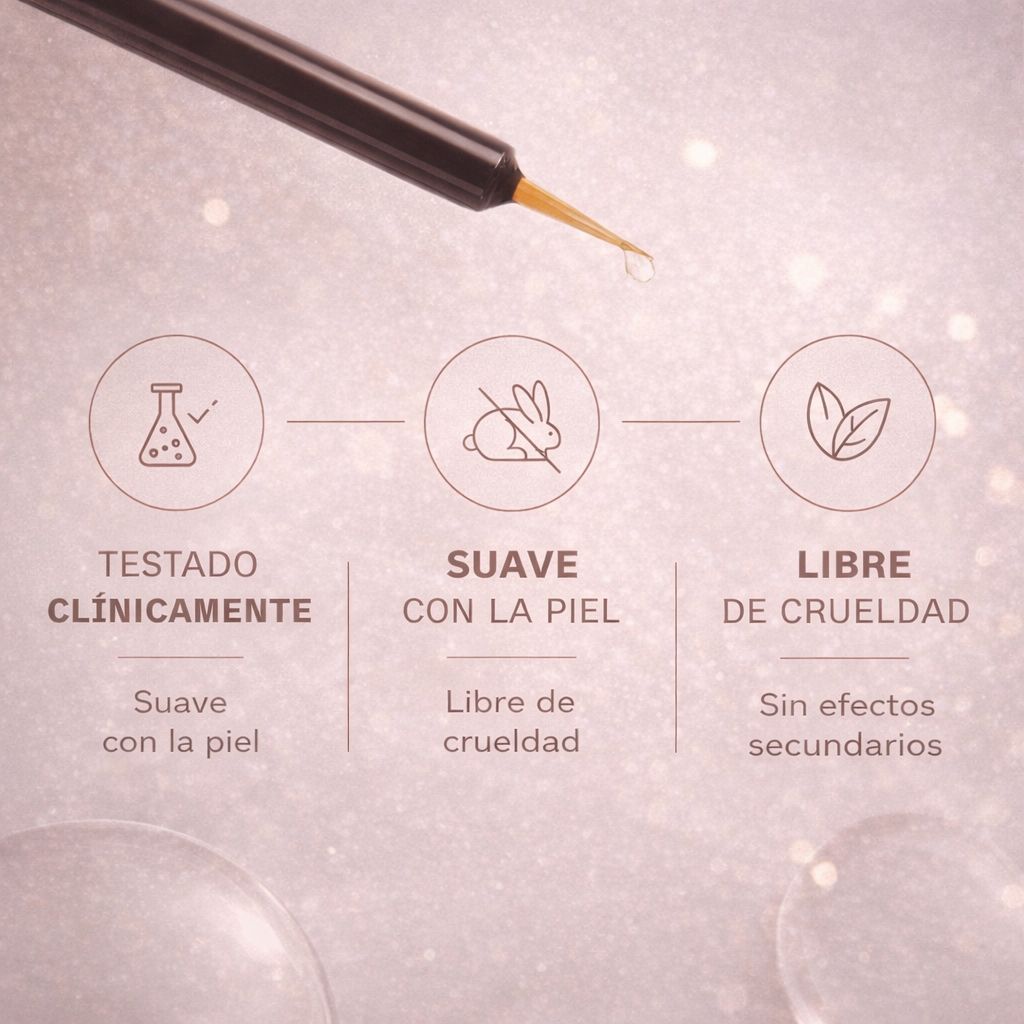 Nuestro sérum está formulado específicamente para ojos sensibles, sin prostaglandinas ni ingredientes irritantes. La gran mayoría de nuestras clientas no experimentan ninguna reacción. En casos excepcionales de sensibilidad extrema, podría aparecer un ligero enrojecimiento temporal. Si esto ocurre, suspende el uso y consulta con tu dermatólogo.